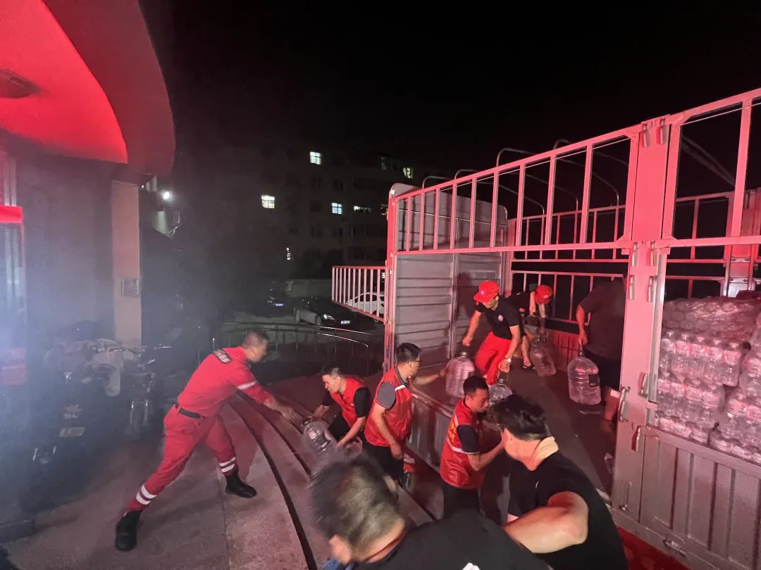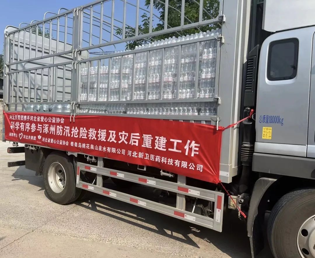 此批物资是协会经过与涿州市抗洪一线街道办事处等单位沟通确认,为保障洪涝临时安置点群众做饭用水需要,连夜紧急组织的大桶矿泉水等群众生活亟需物资。秦皇岛桃花泉山泉水有限公司、河北新卫医药科技有限公司共同捐赠了600桶15L大桶矿泉水、500件瓶装矿泉水等救灾物资,河北顺丰工会积极参与全力配合了此次捐赠活动。