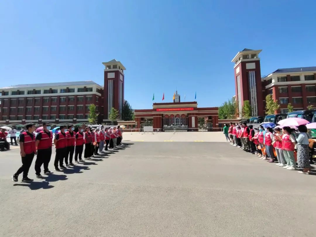 圆满完成爱心助考任务后,各带队队长(霍艳军、李蕃、王彬、孙海涛、孟娜丽)与部分爱心志愿者合影留念
